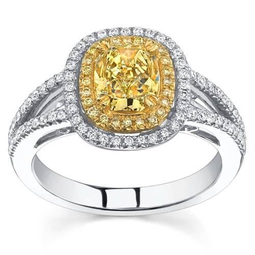 Natural 2.25 CTW Canary Yellow Cushion Cut Diamond Engagement Ring 14KT Two-tone