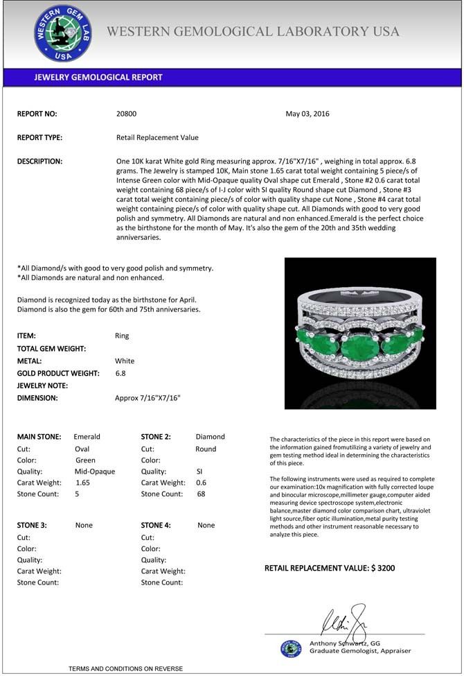 total approx. 6.8 grams. The Jewelry is stamped 10K, Main stone 1.65 carat total weight containing 5 piece/s of Intense Green color with