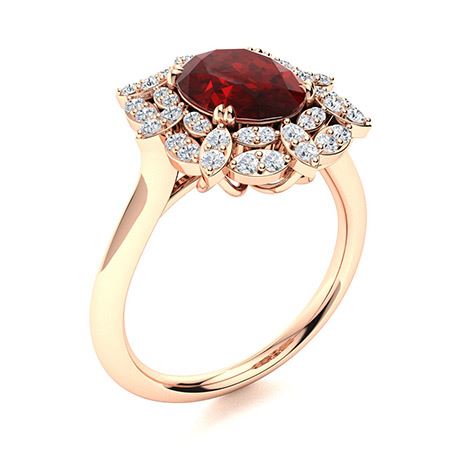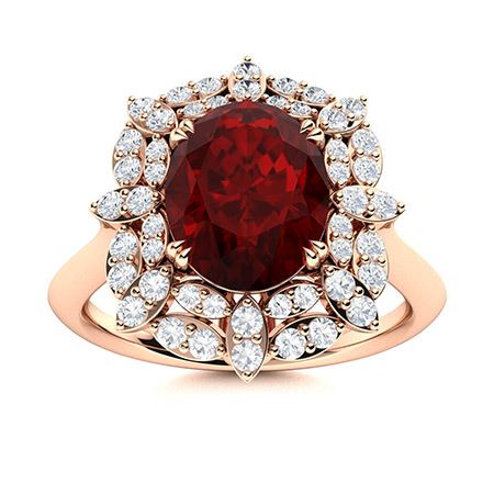 Natural 2.26 CTW Garnet & Diamond Engagement Ring 18K Rose Gold