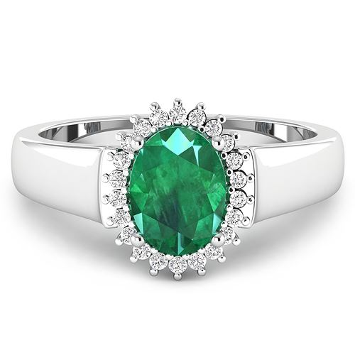 Zambian Emerald Oval/8x6mm - 1/2.20 ctw Natural Heat Treated E + White Diamond Round/1.00mm - 22/0.10 ctw Prong Setting Natural Not Treated N