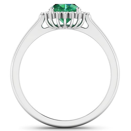 Zambian Emerald Oval/8x6mm - 1/2.20 ctw Natural Heat Treated E + White Diamond Round/1.00mm - 22/0.10 ctw Prong Setting Natural Not Treated N