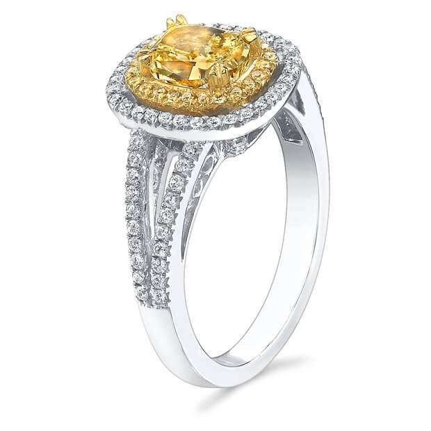 Natural 2.32 CTW Halo Canary Intense Yellow Cushion Cut Diamond Engagement Ring 14KT Two-tone