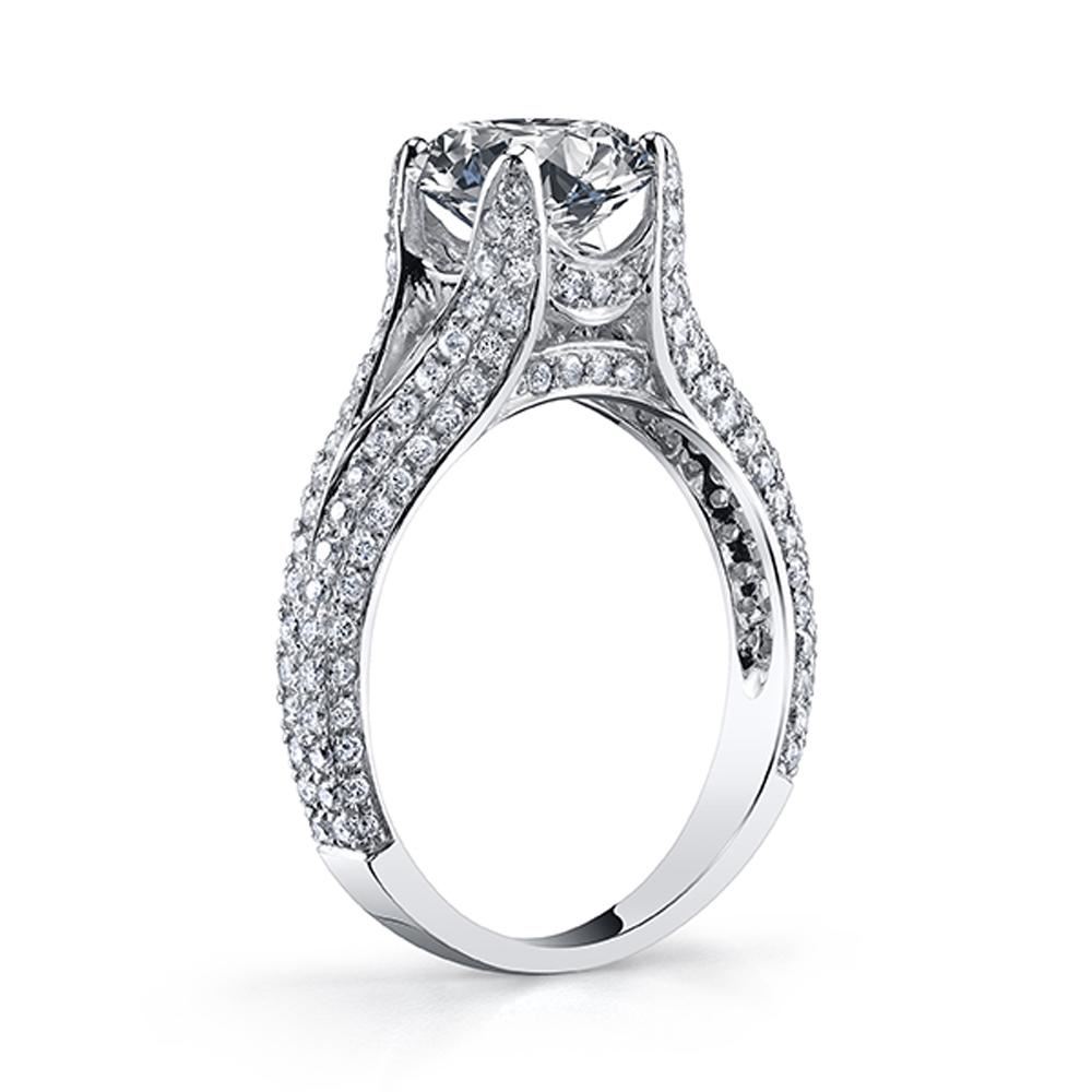 Natural 2.32 CTW Round Cut Split Shank Pave Diamond Ring 18KT White Gold