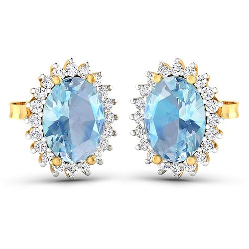 REF-43K3W - Natural 2.36 CTW Aquamarine & Diamond Earrings 14K Yellow Gold - REF-43K3W