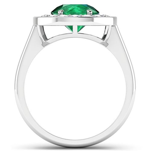 REF-108N7R - Natural 2.38 CTW Zambian Emerald & Diamond Ring 14K White Gold - REF-108N7R