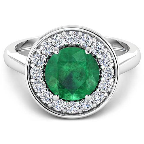 Zambian Emerald Round/8.00mm - 1/1.90 ctw Natural Heat Treated E + White Diamond Round/2.00mm - 16/0.48 ctw Prong Setting Natural Not Treated N