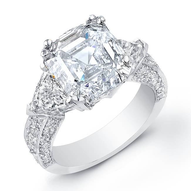 Natural 2.42 CTW Asscher Cut with Trillion Cut Diamond Engagement Ring 18KT White Gold