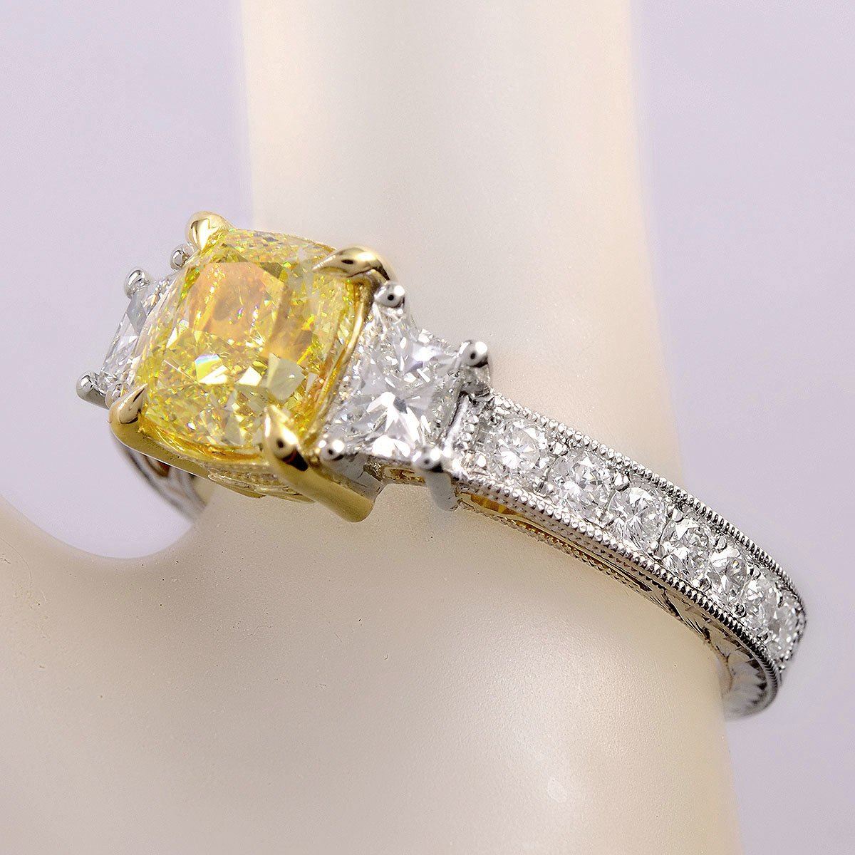 Natural 2.42 CTW Canary Yellow Cushion Cut Diamond Ring 18KT Two-tone