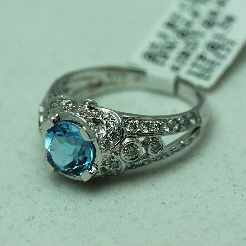 Item details: DIAMOND: 62 Round cut White Diamond @ 0.84ct ---GEMSTONE: 1 Topaz @ 1.58ct---METAL: 14K White Gold---Metal weight 4.67 grams---SKU: 283959C-1 --- Consignor: RC Fine Jewelers --- Availability: Ready to Ship