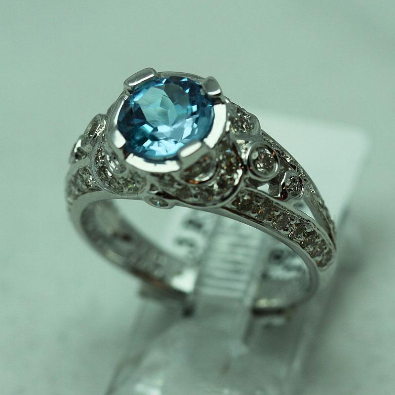 Item details: DIAMOND: 62 Round cut White Diamond @ 0.84ct ---GEMSTONE: 1 Topaz @ 1.58ct---METAL: 14K White Gold---Metal weight 4.67 grams---SKU: 283959C-1 --- Consignor: RC Fine Jewelers --- Availability: Ready to Ship