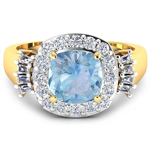 Aquamarine Cushion/8.00mm - 1/1.70 ctw Natural Heat Treated E + White Diamond Baguette/2.00x1.50x1.10mm - 8/0.25 ctw Prong Setting Natural Not Treated N