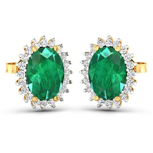 REF-49N3R - Natural 2.46 CTW Zambian Emerald & Diamond Earrings 14K Yellow Gold - REF-49N3R