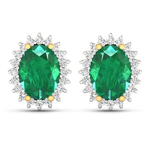 Zambian Emerald Oval/8x6mm - 1/2.20 ctw Natural Heat Treated E + White Diamond Round/1.10mm - 40/0.26 ctw Prong Setting Natural Not Treated N