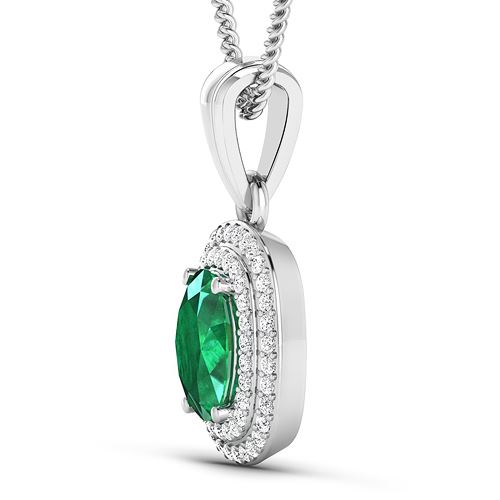REF-53T2H - Natural 2.46 CTW Zambian Emerald & Diamond Pendant 14K White Gold - REF-53T2H