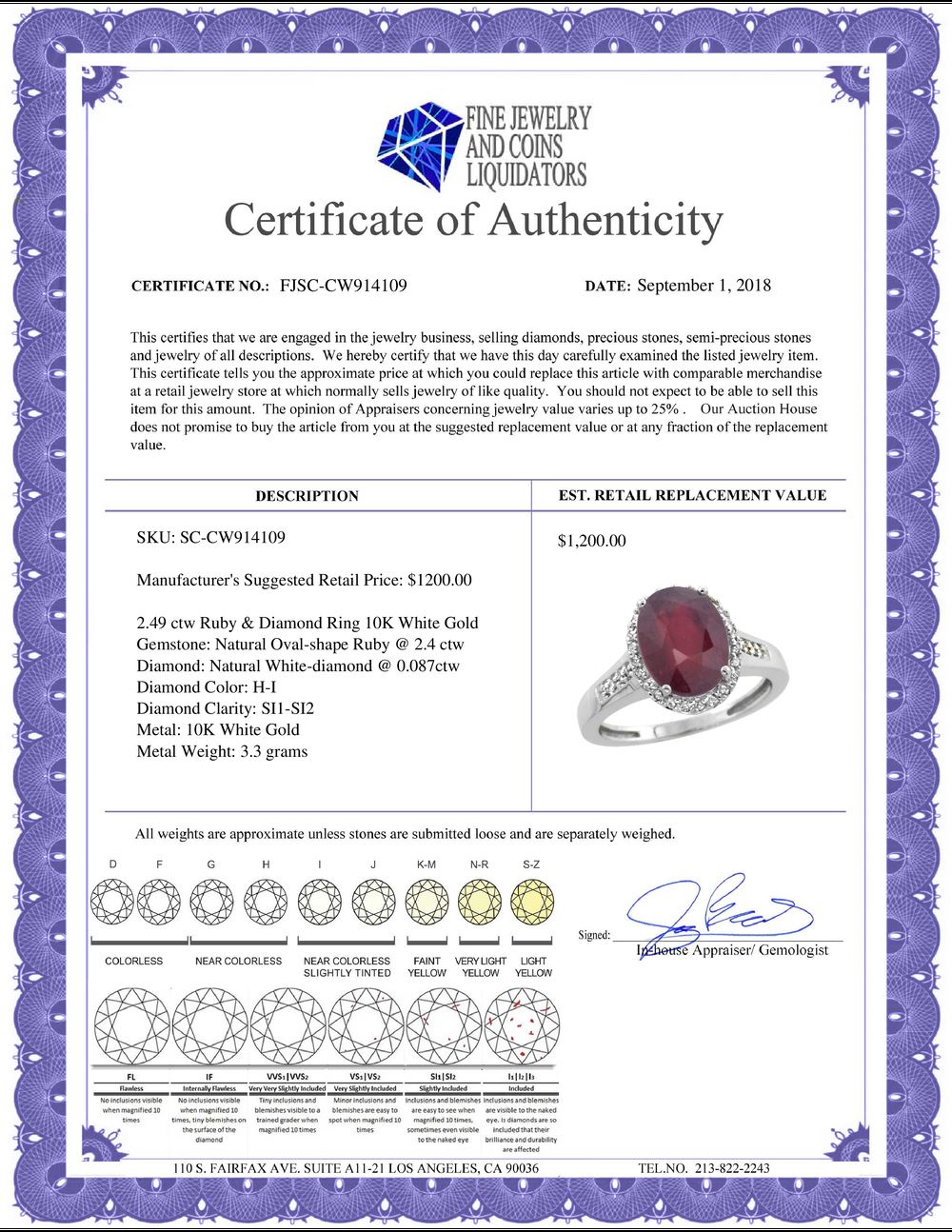 REF-37R3Z ---- SKU:SC-CW914109 ---- Manufacturer's Suggested Retail Price - $1200.00 ---- Natural 2.49 ctw Ruby & Diamond Engagement Ring 10K White Gold