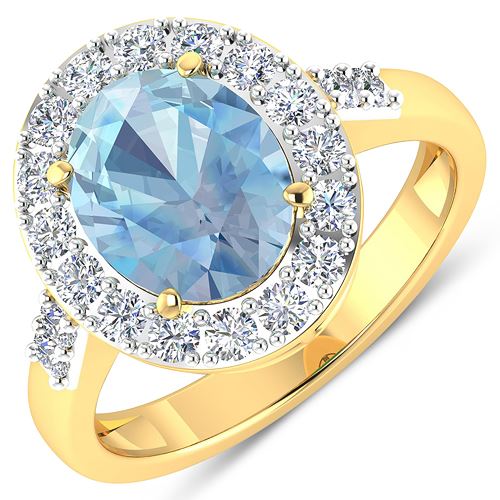 REF-94H5M - Natural 2.5 CTW Aquamarine & Diamond Ring 14K Yellow Gold - REF-94H5M