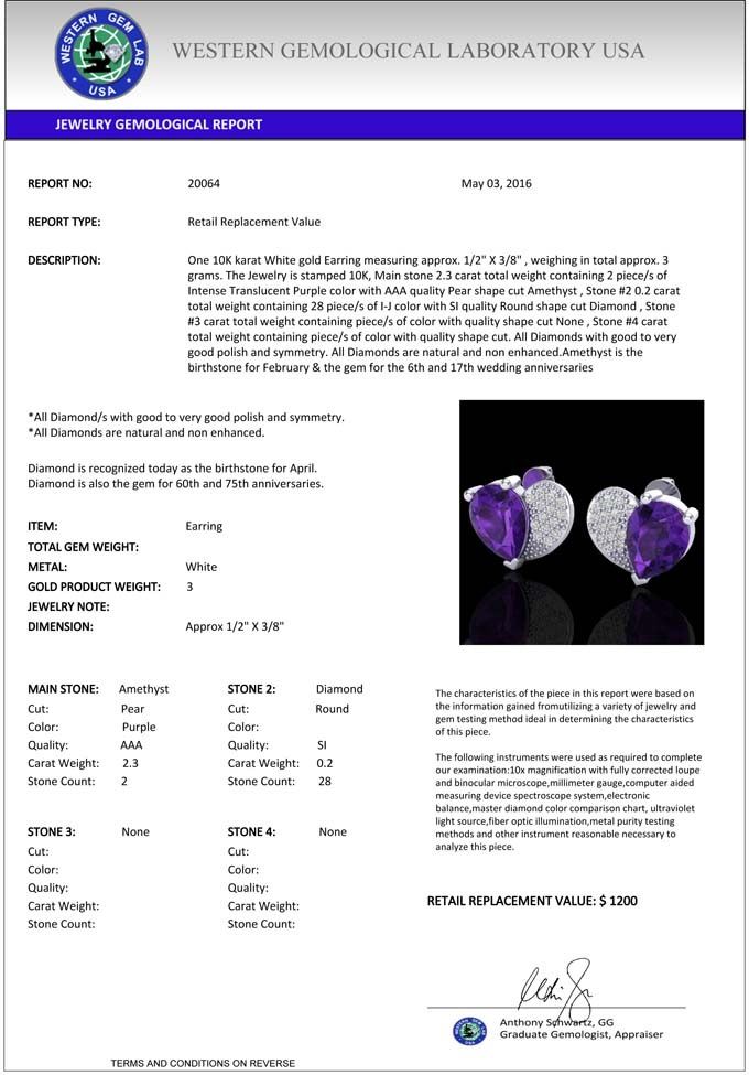 total approx. 3 grams. The Jewelry is stamped 10K, Main stone 2.3 carat total weight containing 2 piece/s of Intense Translucent Purple color with