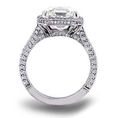 Natural 2.52 CTW Asscher Cut Diamond Micro Pave Ring 14KT White Gold