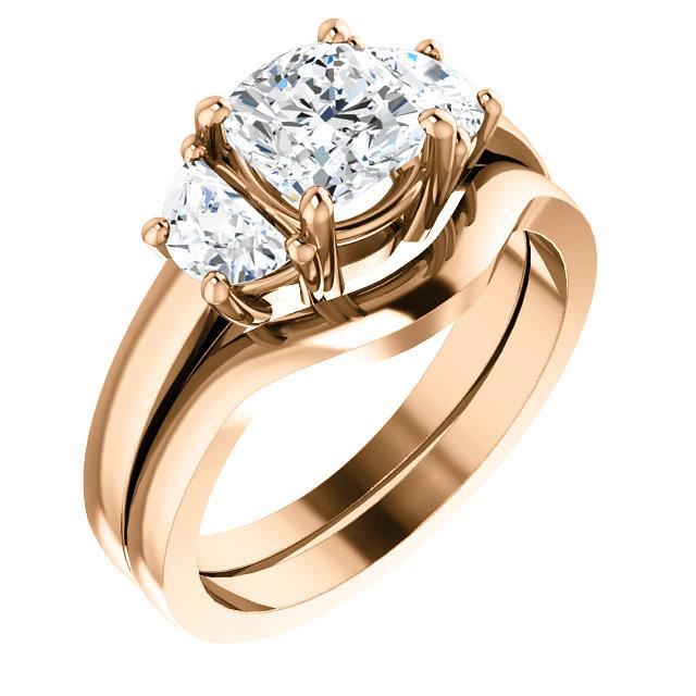Natural 2.52 CTW Cushion Cut & Half Moons 3-Stone Diamond Ring 18KT Rose Gold