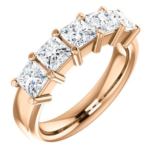 Natural 2.52 CTW Princess Cut 5-Stone Diamond Ring 14KT Rose Gold