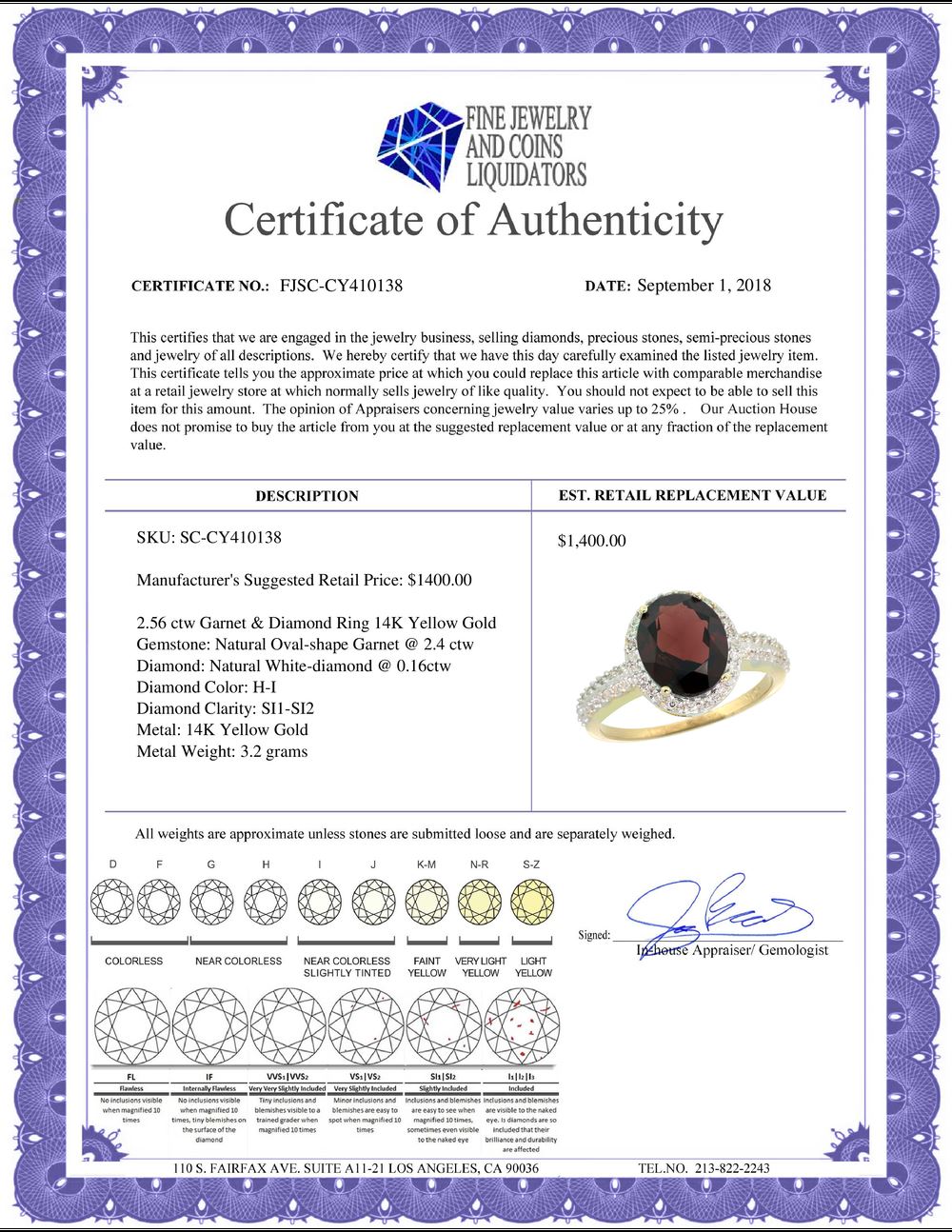 REF-45N3G ---- SKU:SC-CY410138 ---- Manufacturer's Suggested Retail Price - $1400.00 ---- Natural 2.56 ctw Garnet & Diamond Engagement Ring 14K Yellow Gold