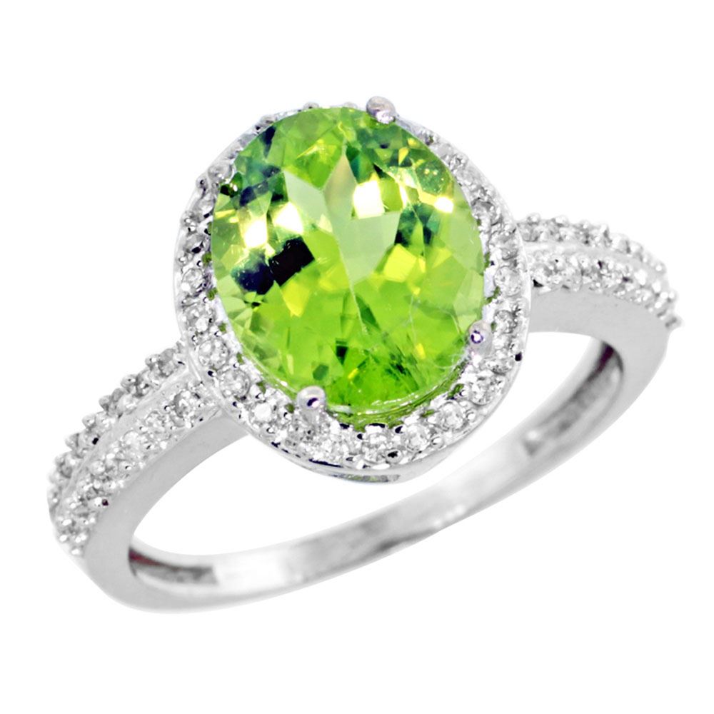 REF-46R6Z ---- SKU:SC-CW411138 ---- Manufacturer's Suggested Retail Price - $1400.00 ---- Natural 2.56 ctw Peridot & Diamond Engagement Ring 14K White Gold