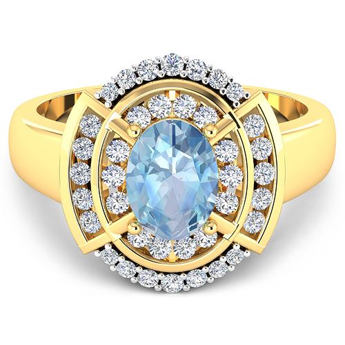 REF-65K2W - Natural 2.57 CTW Aquamarine & Diamond Ring 14K Yellow Gold - REF-65K2W