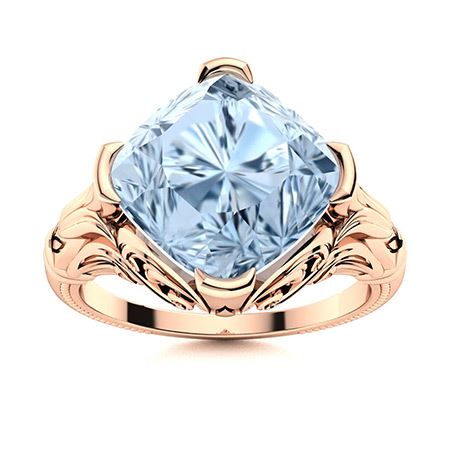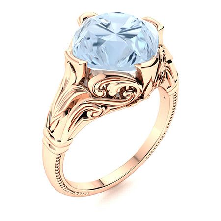 Natural 2.57 CTW Aquamarine Solitaire Ring 18K Rose Gold
