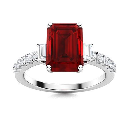 Natural 2.57 CTW Garnet & Diamond Engagement Ring 18K White Gold