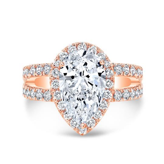 Natural 2.57 CTW Halo Pear Cut Tear Drop Split Shank Diamond Ring 14KT Rose Gold