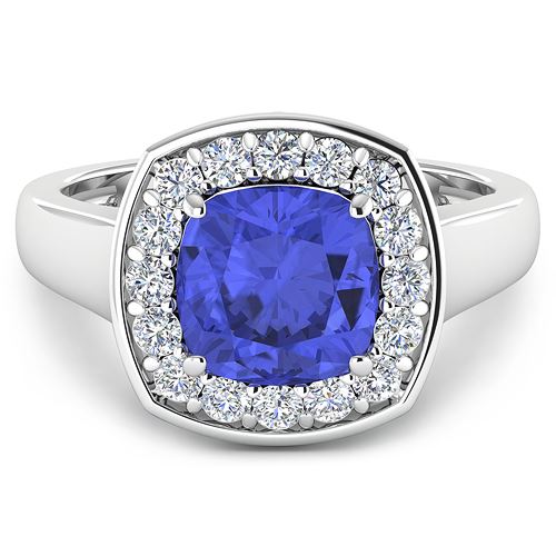 Tanzanite Cushion/8.00mm - 1/2.10 ctw Natural Heat Treated E + White Diamond Round/2.00mm - 16/0.48 ctw Prong Setting Natural Not Treated N