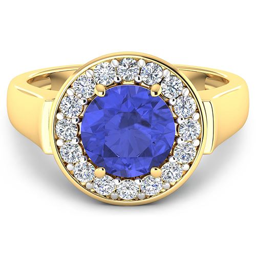 REF-100X8K - Natural 2.58 CTW Tanzanite & Diamond Ring 14K Yellow Gold - REF-100X8K