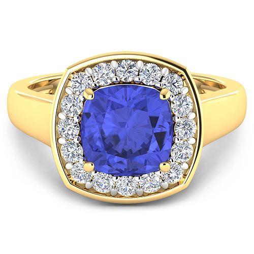 REF-98T7H - Natural 2.58 CTW Tanzanite & Diamond Ring 14K Yellow Gold - REF-98T7H
