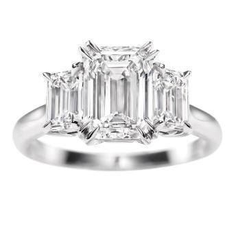 Natural 2.62 CTW 3-Stone Emerald Cut & Trapezoids Diamond Ring 14KT White Gold