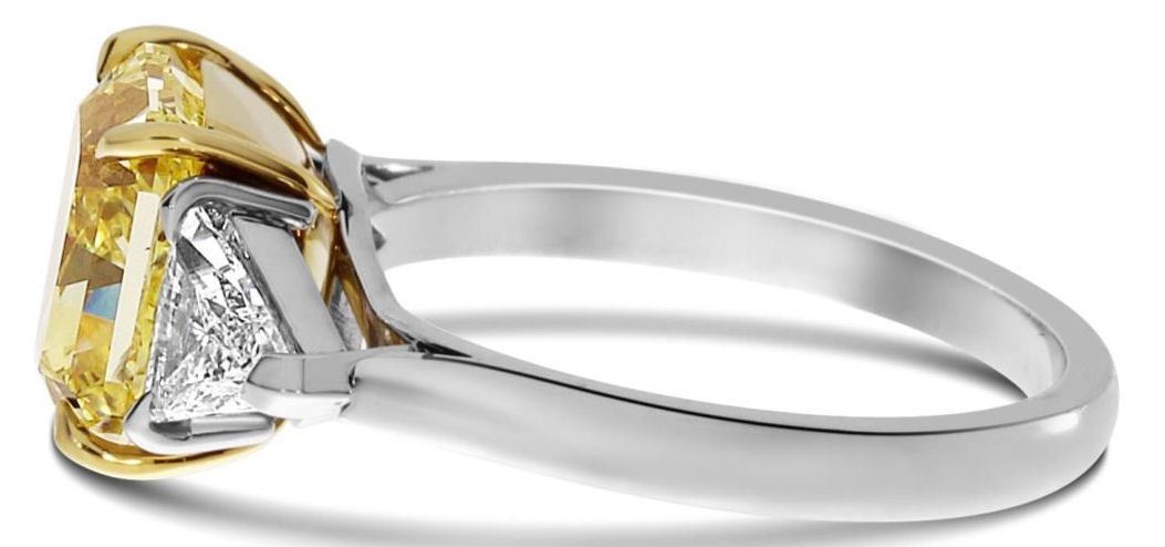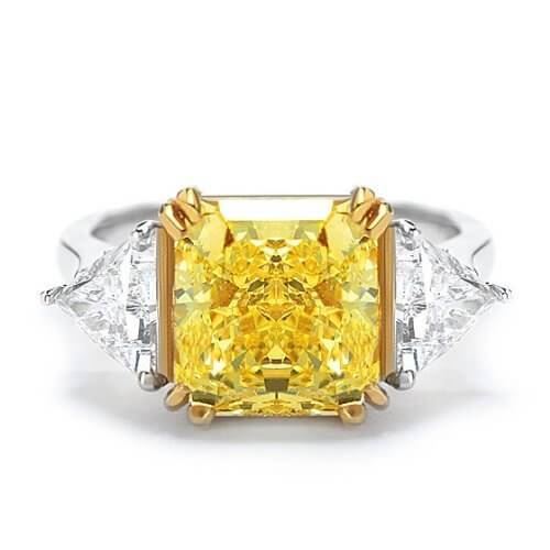 Natural 2.62 CTW Canary Light Yellow Radiant Cut 3-Stone Diamond Ring 18KT Two-tone