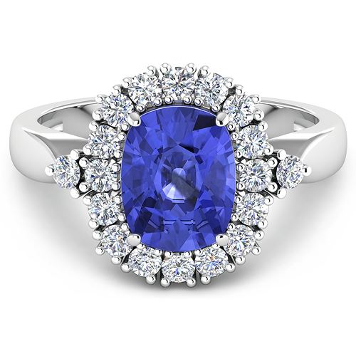 Tanzanite Cushion/9x7mm - 1/2.10 ctw Natural Heat Treated E + White Diamond Round/2.00mm - 18/0.54 ctw Prong Setting Natural Not Treated N