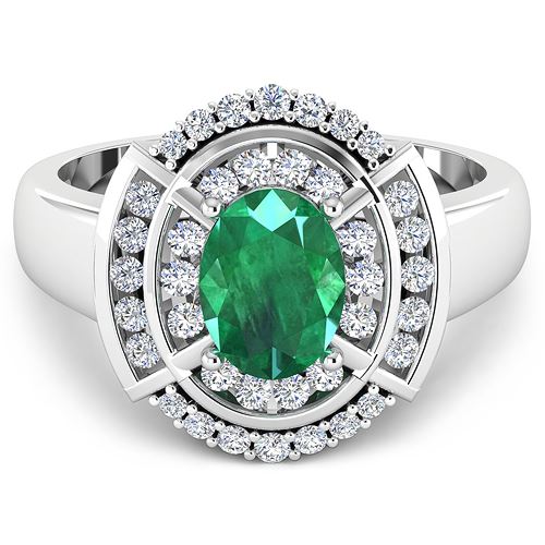 Zambian Emerald Oval/8x6mm - 1/2.20 ctw Natural Heat Treated E + White Diamond Round/1.50-1.60mm - 24/0.36 ctw Prong Setting Natural Not Treated N