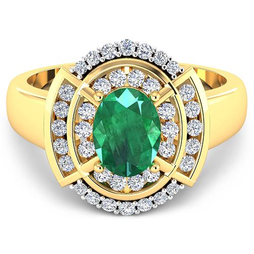 REF-71H2M - Natural 2.67 CTW Zambian Emerald & Diamond Ring 14K Yellow Gold - REF-71H2M
