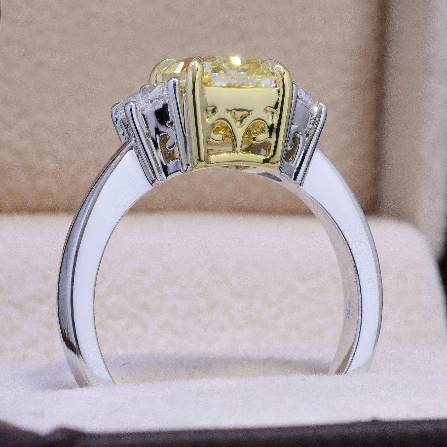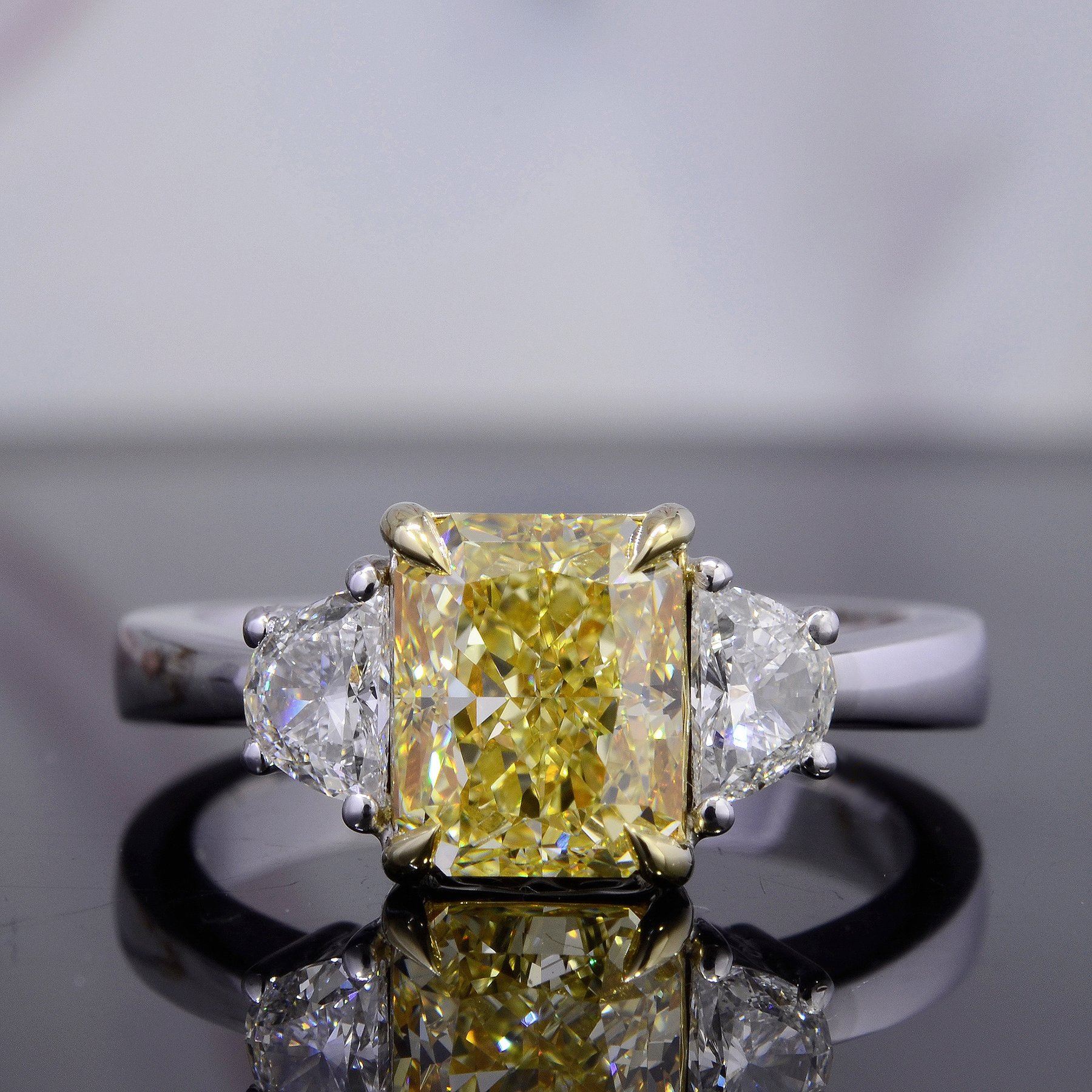 Natural 2.68 CTW Canary Light Yellow Radiant Cut & Half Moon Diamond Ring 18KT White Gold