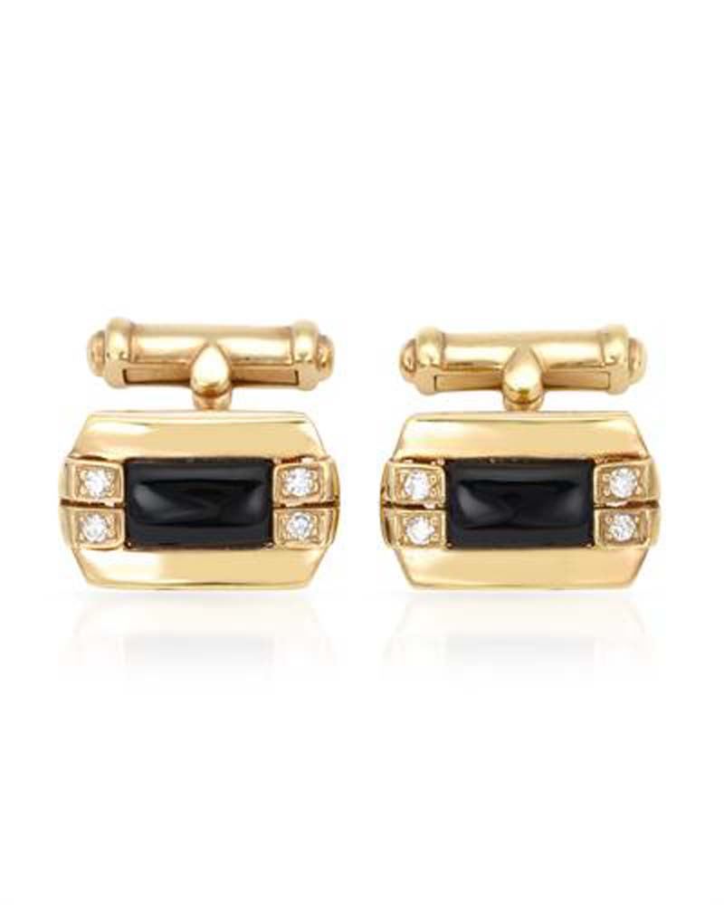 REF-158X4T ---- Natural 2.69 CTW Agate & Diamond Cuff Links 18K Yellow Gold