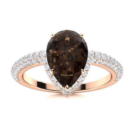 Natural 2.74 CTW Smoky Quartz & Diamond Engagement Ring 18K Rose Gold