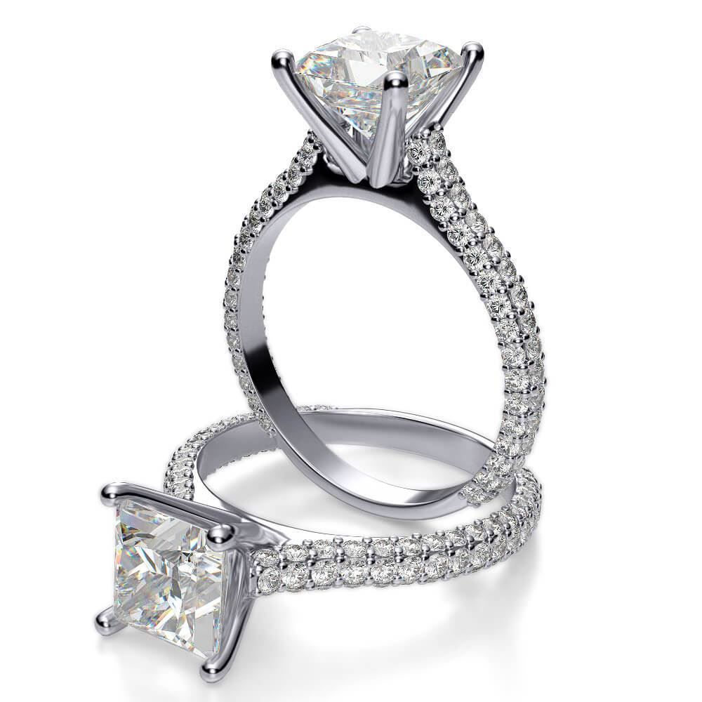 Natural 2.77 CTW Princess Cut Two Row Round Diamond Engagement Ring 14KT White Gold