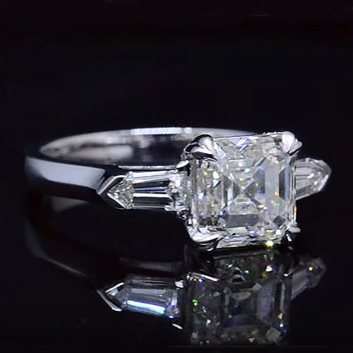 Natural 2.82 CTW 3-Stone Asscher Cut Diamond Ring 14KT White Gold