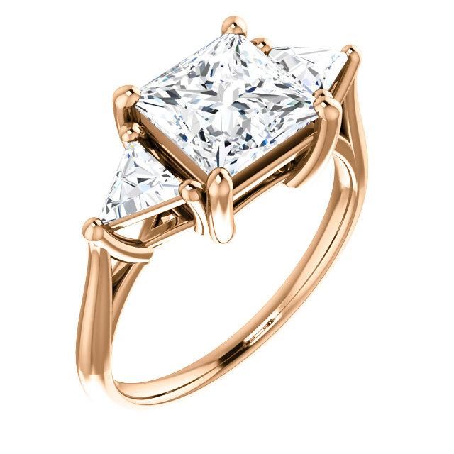 Natural 2.82 CTW 3-Stone Princess Cut & Trillions Diamond Ring 18KT Rose Gold