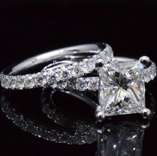 Natural 2.82 CTW Princess Cut Diamond Engagement Set 18KT White Gold