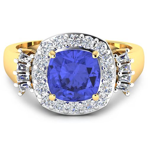 Tanzanite Cushion/8.00mm - 1/2.10 ctw Natural Heat Treated E + White Diamond Baguette/2.00x1.50x1.10mm - 8/0.25 ctw Prong Setting Natural Not Treated N