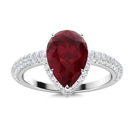 Natural 2.84 CTW Ruby & Diamond Engagement Ring 18K White Gold