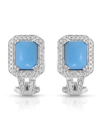 REF-72R2K ---- Natural 2.85 CTW Turquoise & Diamond Earrings 14K White Gold