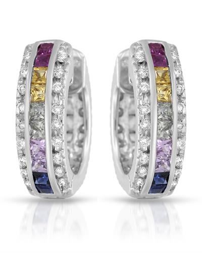 REF-118K8R ---- Natural 2.89 CTW Multi-Sapphire & Diamond Earrings 14K White Gold