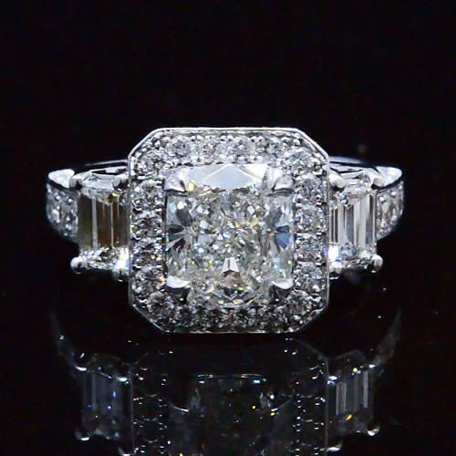 Natural 2.92 CTW Unique Design Halo Cushion Cut Diamond Engagement Ring 18KT White Gold